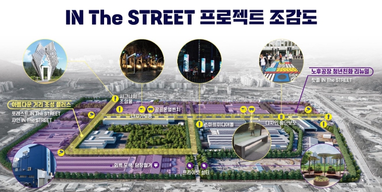 또한, ‘노후공장 청년 리뉴얼 사업’으로 청년근로자들의 에너지가 가득한 핫플거리(핫플 IN The STREET)를 조성한다.