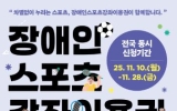 여수 손태성 기자2025. 11.10[나이스데이]여수시는 11월 10일부터 28일까지 ‘2026년도 장애인 및 유·청소년 스포츠강좌이용권’ 신청자를 모집한다. 스포츠강좌이용권은 문화체육관광부와 국민체육진흥공단이 주관하는 지원사업으로 장애인과 저소득층 유·청소년에게 스포츠 참여 기회를 제공해 균등한 여가 복지를 실현하기 위해 추진되고 있다. 장애인 스포츠강좌이용권 지원 대상은 만 5~69세 등록장애인이며 신청은 장애인 스포츠강좌이용권 누리집 또는 읍·면·동 행정복지센터에서 하면 된다. 유·청소년 지원 대상은 국민기초생활보장법에 따른 생계·의료·주거·교육 급여 수급…