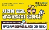 광주 이자형 기자2025. 10.19[나이스데이]광주시교육청시민협치진흥원은 오는 29일 오전 10시부터 2시간 동안 본원 소강당에서 시민 소통 행사 ‘시민이 묻고, 광주교육이 답하다’를 운영한다. 이번 행사는 지난 7월 ‘고입·대입 진학’ 주제를 시작으로, 8월 ‘AI 디지털 교육’, 9월 ‘학교폭력 예방 및 학생 마음·사회 정서’ 등 순으로 진행됐으며, 29일에는 올해 마지막으로 ‘국제교육’을 주제로 열린다. 마지막 행사 역시 시민들의 궁금증을 해소하고 공감대를 형성하는데 주력할 예정이다. 시교육청 세계민주시민교육과 장학관, 장학사가 참여해 국제교육 핵심 정책…