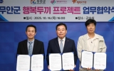 무안 서양빈 기자2025. 10.17[나이스데이]전남 무안군은 지난 16일 무안군청 군수실에서 행복얼라이언스 및 행복도시락사회적협동조합과 함께 결식 우려 아동을 위한 '행복두끼 프로젝트' 업무협약을 체결했다. 이날 협약식에는 김산 군수, 조민영 행복얼라이언스 사무국 본부장, 최준 행복도시락사회적협동조합 사무국장이 참석했다. '행복두끼 프로젝트'는 지방정부·기업·사회적기업이 협력해 아동 결식문제를 해결하는 사회공헌 프로그램으로, 관내 결식 우려 아동 20명에게 1년간 매주 1~2회 총 4천 2백만원 상당의 밑반찬 도시락을 제공하여 끼니 해결이 어려운 아이들의 건강한…
