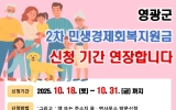 담양 황일섭 기자2025. 10.16[나이스데이]영광군은 전 군민에게 50만 원(2차분)을 지급하는 민생경제회복지원금 신청 기간을 10월 31일까지 2주 더 연장한다. 2차 민생경제회복지원금은 지난 9월 1일부터 10월 15일까지 49,230명에게 246억 원이 지급됐고, 1차 민생경제회복지원금 신청 대비 미신청자가 많은 것으로 나타났다. 이와 관련하여 군은 군민들 중 출타로 인한 부재, 민생회복 소비쿠폰과 신청기간(9. 22.∼10. 31.)을 혼동하여 신청하지 못하는 사례가 있음을 반영하여 지원금을 신청하지 못한 군민들이 혜택을 빠짐없이 받을 수 있도록 신청을…