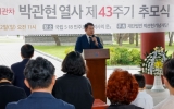 전남 이영욱 기자2025. 10.13[나이스데이]이정선 광주시교육감이 12일 국립5·18민주묘지 ‘역사의 문’ 앞에서 열린 ‘민주화의 새벽기관차 박관현 열사 제43주기 추모식’에 참석했다. 이날 추모식에는 이정선 교육감을 비롯해, 강기정 광주광역시장, 윤목현 5·18기념재단 이사장, 이개호 영광군 국회의원, 유족 및 시민사회단체 관계자 등이 참여해 열사의 숭고한 뜻을 기렸다. 이정선 교육감은 “박관현 열사의 숭고한 정신을 잊지 않고 기억하는 길은 5·18 정신을 미래 세대에 계승하고 발전시키는 교육이다”며, “오월 정신을 전국으로, 세계로 알리고 확산하여 …