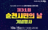 구청 이영욱 기자2025. 10.02[나이스데이]‘더 큰 미래를 위한 삶의 쉼터, 치유도시 순천!’ 그 새로운 도약을 위한 순천시(시장 노관규)가 오는 15일 오천그린광장 일원에서 24개 읍면동 화합행사와 함께 ‘제31회 순천시민의 날’기념식을 개최한다. 이번 행사는 오후 1시부터 밤 8시 30분까지 28만 순천시민이 하나되어 글로벌 문화산업, 삶이 머무는 치유도시 메카로 발돋움한 일류 순천의 자부심을 높이는 장으로 어울한마당 큰 잔치가 성대하게 펼쳐진다. 이날 펼쳐지는 제31회 순천시민의 날 행사는 지역사회의 화합과 단결을 다짐하고, 순천의 발전을 기념하는 의미…