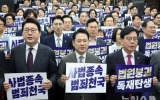 순천 손태성 기자2025. 09.16[나이스데이] 국민의힘은 16일 열린 의원총회에서 장외투쟁 등을 포함한 대여 투쟁 방안에 대해 논의했다. 최근 대통령실의 조희대 대법원장 관련 발언 등을 포함해 이재명 대통령의 탄핵소추안을 발의하기 위한 법적 검토에도 착수했다는 입장이다. 박성훈 국민의힘 수석대변인은 이날 오전 국회에서 열린 의원총회를 마친 뒤 기자들과 만나 "지금 더불어민주당의 일방 독주·독재에 대한 많은 의원들의 규탄이 있었다"고 말했다. 박 수석대변인은 "앞으로 국민의힘 대외 투쟁 방안과 관련해 더 이상 국회 담벼락 안이 아니라 장외에 가서 강력하게…