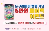 전남 이영욱 기자2026. 02.24[나이스데이]광주 동구는 지역상권 활성화와 소비 촉진을 위해 동구 지역사랑상품권 ‘광주 동구랑페이’ 발행을 기념한 5만 원 페이백 이벤트를 추진한다고 밝혔다. 이번 이벤트는 오는 27일부터 오는 3월 6일까지 진행된다. 참여를 희망하는 주민은 이벤트 기간 내 동구랑페이 가맹점에서 동구랑페이카드로 10만 원 이상 결제한 뒤, 관련 영수증과 동구랑페이 실물 카드를 지참해 동구청 일자리경제과를 방문하면 응모할 수 있다. 참여자 가운데 총 100명을 추첨해 동구랑페이 선불카드 5만 원권을 지급할 예정이며 응모와 경품 수령은 1인 1회로 …