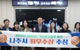나주 이영욱 기자2025. 12.02[나이스데이]전라남도 나주시가 불법광고물 정비 강화, 건전한 광고문화 확산, 폐현수막 재활용체계 구축 등 전방위적인 도시환경 개선 노력을 인정받아 ‘2025년 전라남도 옥외광고업무 평가’에서 ‘최우수상’을 수상했다. 나주시(시장 윤병태)는 이번 평가에서 폐현수막 재활용 시범사업 추진, 올바른 광고문화 기반 조성, 불법광고물 정비 등 여러 주요 항목에서 고르게 높은 점수를 받으며 최우수 기관으로 선정됐다고 2일 밝혔다. 시는 폐현수막 재활용을 위한 협약 체결, 집하장 설치 등 재활용 인프라를 구축하고 폐현수막 활용을 촉진하는 생활…