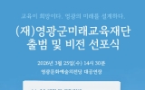영광 배동영 기자2026. 03.11[나이스데이]영광군미래교육재단은 오는 3월 25일 오후 2시 30분, 영광문화예술의전당 대공연장에서 '영광군미래교육재단 출범 및 비전선포식'을 개최한다. 이번 행사는 영광군미래교육재단의 공식 출범을 대ㆍ내외에 알리고 지역 교육 생태계 조성의 출발을 알리기 위하여 마련됐다. 재단 출범 경과보고, 재단 비전 선포, 퍼포먼스 등이 진행될 예정이며, 재단의 설립 취지와 운영 방향을 군민과 함께 공유하는 뜻깊은 자리가 될 것으로 기대된다. 영광군미래교육재단은 지역 교육의 지속가능한 발전과 교육 경쟁력 강화를 위해 대학생 등록금 지원, …