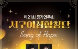 구청 이영욱 기자2025. 12.02[나이스데이]광주광역시 서구여성합창단이 광복 80주년을 기념해 희망과 위로의 메시지를 노래한다. 서구여성합창단은 오는 4일 오후7시 서빛마루문화예술회관에서 ‘Song of Hope(희망의 노래)’를 주제로 제21회 정기연주회를 개최한다. 이번 공연에서 서구여성합창단은 ‘엄마 좀 그만 불러’, ‘회상’, ‘별’, ‘호랑수월가’, ‘가시리’ 등 다양한 곡을 특유의 풍부한 화음과 섬세한 해석으로 선보이며 관객에게 깊은 감동을 전할 예정이다. 또한 현악3중주 드림앙상블, 배우 문지혜, 한국무용가 최유정 등이 출연하는 특별공연도 함…