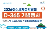 전남 이영욱 기자2025. 09.01[나이스데이]‘2026여수세계섬박람회 D-365 기념행사’가 오는 5일 여수세계박람회장 해양광장에서 펼쳐진다. (재)2026여수세계섬박람회 조직위원회는 섬박람회 개막을 1년 앞두고 여수시민의 역량 결집과 사전 붐업 분위기 조성을 위해 이번 행사를 마련했다. 조직위에 따르면 섬박람회 주행사장은 8개의 전시관에 들어갈 콘텐츠 윤곽이 드러났으며, 이달 말 착공하여 내년 6월 준공 예정이다. 부행사장인 개도와 금오도는 섬 캠핑장, 카약‧카누 체험, 갯벌 체험 등 다양한 섬 체험 프로그램을 준비하고 있다. 또한, 13개국 14개 …