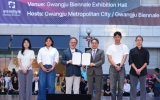탑뉴스 뉴시스2025. 08.30[나이스데이]강기정 광주광역시장이 29일 오후 북구 광주비엔날레 광장 특설무대에서 열린 '2025 광주디자인비엔날레' 개막식에 참석해 국내·외 학생들로부터 광주포용디자인 매니페스토 선언서를 전달 받았다.