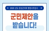 전남 이영욱 기자2025. 08.29[나이스데이]장성군의회는 오는 9월 2일부터 10월 2일까지 30일간 ‘2025년도 행정사무감사 군민제안 창구’를 운영한다고 밝혔다. 제안 대상은 ▲군 주요 시책과 사업의 개선·건의사항 ▲위법·부당한 행정 사례 등이다. 단, 개인 사생활 침해, 단순 숙원사업, 재판·수사 중인 사건, 명예훼손 우려가 있는 사항, 익명 제안 등은 제외된다. 이번에 접수된 내용은 장성군의회 행정사무감사 대상에 반영하거나 참고자료로 활용될 예정이며, 군민제안은 방문접수 또는 전화, 팩스 및 우편이나 장성군의회 누리집을 통해 가능하다. 심민섭 의장은“…