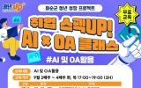 장성 황일섭 기자2025. 08.29[나이스데이]화순군은 29일 청년성장프로젝트 공모사업의 거점 공간인 ‘청춘오름’에서 청년들의 취업 준비와 직무 적응을 위해 9월 한 달간 실무형 OA 기초 역량 강화 프로그램을 운영한다고 밝혔다. '청년성장프로젝트'는 15세~49세 미취업 청년들이 구직 단념을 하지 않도록 취·창업과 일상 회복을 돕는 사업이다. 관내 중소기업탐방, 부모 교육, 맞춤형 상담, 청년정책 안내 및 연계를 통한 취·창업프로그램 등 청년들의 일상 회복 및 취·창업에 도움이 되는 프로그램 등을 운영한다. 이번에 진행될 프로그램에서는 AI 및 사무자동…