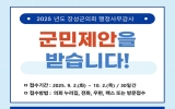 신안 박정래 기자2025. 08.29[나이스데이]장성군의회는 오는 9월 2일부터 10월 2일까지 30일간 ‘2025년도 행정사무감사 군민제안 창구’를 운영한다고 밝혔다. 제안 대상은 ▲군 주요 시책과 사업의 개선·건의사항 ▲위법·부당한 행정 사례 등이다. 단, 개인 사생활 침해, 단순 숙원사업, 재판·수사 중인 사건, 명예훼손 우려가 있는 사항, 익명 제안 등은 제외된다. 이번에 접수된 내용은 장성군의회 행정사무감사 대상에 반영하거나 참고자료로 활용될 예정이며, 군민제안은 방문접수 또는 전화, 팩스 및 우편이나 장성군의회 누리집을 통해 가능하다. 심민섭 의장…