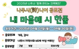 함평 전범석 기자2025. 08.28[나이스데이]전라남도 나주시지역사회보장협의체 노인 실무분과는 관내 만 65세 이상 어르신을 대상으로 ‘2025년 나주시(詩)니어 제1회 내 마음에 시 한 줄 공모전’을 오는 9월 1일부터 9월 30일까지 개최한다. 이번 공모전은 나주시 거주 어르신이라면 누구나 편안하게 자신의 이야기를 담아 참여할 수 있도록 마련된 특화사업이다. 평소 문화·예술 활동에 익숙하지 않은 분들도 부담 없이 시 창작의 즐거움을 느끼고 이를 통해 삶의 순간과 감정을 글로 표현하며 지역사회에 따뜻한 울림을 전하는 것을 목표로 한다. 응모 주제는 ‘가족’ 또…