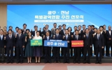 무안 서양빈 기자2025. 08.27[나이스데이]광주광역시와 전라남도가 광주전남공동혁신도시가 있는 나주시 대회의실에서 국가균형성장을 향한 새로운 출발을 선언했다. 나주시는 27일 광주광역시, 전라남도와 함께 ‘광주·전남 특별지방자치단체’ 출범을 선포하고 제1호 공통사무로 ‘광주~나주 광역철도 건설’을 확정했다고 밝혔다. 세 지자체는 9월까지 신규 노선 합의를 마무리하고 정부와 국회를 상대로 공동 대응에 나서기로 하는 등 광역교통망 확충을 위한 초광역 협력을 본격화한다. 특별광역연합을 함께하기로 한 전라남도와 광주광역시는 수도권 집중과 지방소멸 위기라는 국가적 과…
