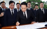 정치 뉴시스2025. 08.27[나이스데이] 장동혁 신임 국민의힘 대표는 27일 "지금 국민의힘이 해야 할 일은 하나로 뭉치고 자유 우파 시민들과 연대해 자유대한민국을 지키고 이재명 정권의 폭정을 막아내는 것"이라고 밝혔다. 장 대표는 이날 오전 당 대표 취임 후 첫 일정으로 서울 동작구 국립현충원을 찾아 참배한 뒤 일각에서 제기되는 분당설과 관련한 입장을 묻는 기자들의 질문에 이같이 답했다. 그는 "정치에 있어서 격동의 시기마다 이런저런 이야기들이 나오는 것 같다"며 "정가에서 떠도는 얘기에는 관심을 두지 않고 지금 국민의힘이 해야 할 일을 해 나가…