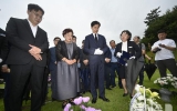 기고 뉴시스2025. 08.27[나이스데이] 정청래 더불어민주당 대표가 27일 국립대전현충원을 찾아 홍범도 장군, 순직 해병대원 고(故) 채수근 상병, 연평해전 전사자, 천안함 용사 묘역 등을 참배했다. 정 대표는 이날 김병기 원내대표와 조승래 사무총장 등과 함께 대전 유성구 국립대전현충원을 찾았다. 정 대표는 현충탑을 향해 분향·묵념한 뒤 방명록에 '평화의 길은 따로 없습니다, 평화가 곧 길입니다, 평화로운 한반도를 만들겠습니다'라는 글을 남겼다. 이어 홍 장군 묘역으로 이동해 '당 대표 명의' 조화를 헌화한 뒤 분향 후 참배했다. 또 무릎을 …