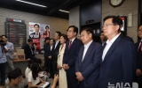 전남 뉴시스2025. 08.13[나이스데이] 송언석 국민의힘 비상대책위원장 겸 원내대표는 13일 김건희 특검이 국민의힘 중앙당사를 압수수색 하면서 당원명부 자료를 요구한 데 대해 "의원들과 당원 동지와 함께 당원명부를 끝까지 지키겠다"고 밝혔다. 송 위원장은 이날 오후 서울 여의도 중앙당사에서 "무도한 특검의 압수수색을 결코 이해할 수가 없다. 당원명부는 당의 알파요 오메가다. 정당의 목숨과도 같은 부분"이라며 이같이 말했다. 그는 "특검에서는 도대체 범죄 사실에 해당하지도 않은 당원명부를 왜 털려고 하는 것인가"라며 "특검에서 불법 무도하게 …