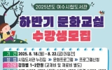 여수 손태성 기자2025. 08.13[나이스데이]여수시립도서관은 쌍봉·현암·환경도서관에서 하반기 프로그램을 운영하고 이에 앞서 8월 18일부터 22일까지 5일간 9개 강좌 수강생 160명을 모집한다. 프로그램 운영 기간은 9월 1일부터 11월 25일까지며, 강좌별로 운영 기간과 시간이 다르다. 대상은 강좌별로 성인 또는 초등 저학년이다. 쌍봉도서관 개설 강좌는 성인 대상 ▲‘책놀이 지도사’ / 초등 저학년 대상 ▲‘그림책으로 배우는 영어’다. 현암도서관 개설 강좌는 성인 대상 ▲‘그림책 감정코칭 지도사(1급)’ ▲‘ESG 그림책 융합 지도사’다. 환경도서관…