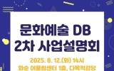 화순 여흥기 기자2025. 08.06[나이스데이](재)화순군문화관광재단은 8월 12일 오후 2시 화순 어울림센터 다목적강당에서 ‘2025 문화예술인 DB 구축 2차 사업설명회’를 개최한다고 밝혔다. 이번 설명회는 화순에서 활동 중인 문화예술인 및 단체를 대상으로 하며, 사전 신청자 누구나 참여할 수 있다. (재)화순군문화관광재단은 지역에서 활동하는 예술인과 예술단체 현황을 한눈에 볼 수 있는 화순군 문화예술 데이터베이스(DB) 구축 사업을 추진 중이다. 이는 화순 문화예술의 향후 정책 및 지원사업에 있어 기초자료로 활용하기 위한 것으로서 지난 5월 26일 …