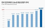 탑뉴스 뉴시스2025. 11.28[나이스데이] 10월 전국 민간아파트 3.3㎡(평)당 평균 분양가격이 처음으로 2000만원을 돌파했다. 28일 주택도시보증공사(HUG)에 따르면 10월 말 기준 최근 1년간 전국에서 신규 분양된 민간아파트의 ㎡당 평균 분양가는 605만2000원으로, 전년 동월 대비 5.1% 상승했다. 이를 3.3㎡로 환산하면 2000만7000원이다. 2024년 초 1700만원대 수준이던 분양가는 2년여 만에 3.3㎡당 300여 만원 상승했다. 국민평형(34평) 기준이면 약 1억원 가량이 오른 셈이다. 이 기간 수도권도 처음으로 …
