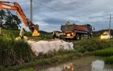 영광 배동영 기자2025. 07.25[나이스데이]영광군은 7월 17일부터 20일까지의 집중호우로 많은 피해가 발생했으며, 도로 관련 피해는 도로 사면 유실 5개소, 도로 부지 내 토사 유입 및 침수 14개소, 배수로 토사 퇴적 20개소 등 적지 않은 피해가 발생했다. 이에 영광군은 피해 발생 도로의 신속한 복구를 위해 자체 도로보수반 투입 및 중장비 임차를 통해 응급 복구작업에 속도를 내고 있다. 특히 도로 사면 유실로 인해 군내버스 등 차량 통행에 어려움이 발생한 군서면 가사리 농어촌도로 등 3개소에 대해 도로보수반을 투입해 톤백 쌓기 및 성토작업을 늦은 시…