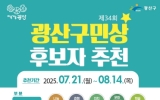 완도 주용규 기자2025. 07.22[나이스데이]광주 광산구가 지역사회 발전, 상생공동체 실현에 앞장선 제34회 ‘광산구민상’ 후보자를 공모한다. △나눔‧봉사 △효행‧복지 △자치공동체 △문화‧예술‧체육 △학술‧교육 △지역경제 △노사상생 △산업기술 △인권증진 △안전‧환경까지 총 10개 부문에서 공적을 세운 시민 등에게 상을 수여한다. 광산구에서 태어났거나 3년 이상 살고 있는 주민, 공고일 기준 3년 이상 사업장 소재지가 광산구인 직장에 다니거나 활동 실적이 있는 시민이라면 누구나 주민 30명 이상 추천이나 부서(동)장, 기관‧단체장 추천으로 후보자가 될 수 있다.…