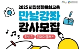 순천 손태성 기자2025. 07.22[나이스데이](재)순천문화재단은 시민들의 생활문화예술 활동을 장려하고 지원하기 위해 2025년 시민생활문화교육 「만날강좌」 강사를 오는 29일 오후 6시까지 모집한다. 이번 모집은 ‘하반기’, ‘원데이클래스’ 두 분야로 진행되며, 지난 3월 ‘입문·심화’, ‘상반기’ 모집에 이어 올해 두 번째 강사 모집이다. 모집 인원은 하반기 강좌 7명, 원데이클래스 10명 내외로 총 17명 내외 강사를 선정할 예정이다. 최종 선정된 하반기 운영 강사는 9월부터 11월까지 약 3개월간 12회차 강의를 운영하게 되며, 원데이클래스는 재단과 …