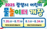 구청 이영욱 기자2025. 07.18[나이스데이]광양시는 여름철 무더위 해소와 시민들의 여가활동 증진을 위해 오는 7월 25일부터 어린이 물놀이터를 순차적으로 개장한다고 밝혔다. 운영 장소는 백운제 테마공원과 마동근린공원 꿈빛놀이터 2개소로, 특히 새롭게 문을 여는 마동근린공원 꿈빛놀이터에 대한 시민들의 기대가 크다. 이 놀이터는 ‘마동이네 농장’(어린이 놀이터), ‘당근 밭’(유아 놀이터), ‘사계절 놀이터’ 등 3개 놀이영역으로 구성돼 있으며, 평상시에는 사계절 놀이터로 운영되고 여름철에는 물놀이터로 전환돼 시원한 물놀이 공간으로 활용된다. 백운제 테마공원…
