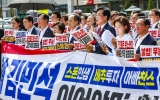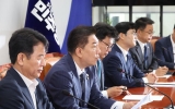 탑뉴스 뉴시스2025. 07.01[나이스데이] 국민의힘은 1일 용산 대통령실 앞에서 이재명 대통령을 향해 김민석 국무총리 후보자 지명 철회와 국회 법제사법위원장 반환 등을 촉구했다. 송언석 원내대표는 이날 오전 서울 용산 대통령실 앞에서 현장 의원총회를 열고 "대통령이 할 일은 분명하다. 국무총리 지명을 철회하는 것"이라며 "새털처럼 가볍고 오만한 김민석 총리 인준을 강행하는 순간 이재명 정부의 몰락이 시작될 것"이라고 말했다. 그는 김 후보자를 겨냥해 "배추 농사에 투자해 매년 450만원씩을 받았다는 해명으로 뙤약볕에 땀 흘리는 농민들을 우롱하는 사람…