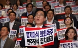 탑뉴스 뉴시스2025. 06.27[나이스데이] 국민의힘은 27일 더불어민주당의 상임위원장 선출 강행에 "이재명 정권과 민주당은 거대야당 시절의 독주, 폭주, 횡포 이러한 입장에서 단 한 발짝도 달라지지 않았다"고 비판했다. 국민의힘은 이날 오후 국회 본회의에 참석하는 대신 국회 로텐더홀 계단에서 법제사법위원장, 예산결산특별위원장 등 선출 표결 강행 규탄대회를 열었다. 송언석 원내대표는 "(이재명 대통령은) 소통과 대화, 협치를 복원하겠다고 얘기했다. 하지만 한 달도 채 되지 않은 지금 이 말은 전부 새빨간 거짓말임이 드러났다"며 "민주당은 여야 합의…