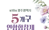 고흥 주용규 기자2025. 06.27[나이스데이]광주 동구는 제18회 광주 5개구 연합합창제가 오는 7월 2일 오후 7시 30분 빛고을시민문화관에서 열린다고 밝혔다. 이번 합창제는 광주 5개 자치구 구립합창단이 모인 ‘광주광역시 5개구 합창연합회(회장 박병국 동구 합창단 지휘자)’가 주관한다. 올해로 18회를 맞은 이날 행사는 광주 5개구 합창단이 한자리에 모여 지난 1년 동안 갈고 닦은 실력을 선보이는 무대로 각 구 합창단은 아름다운 하모니로 관객들에게 깊은 감동을 선사할 예정이다. 이날 공연에서는 ‘나는 반딧불’, ‘못잊어’, ‘젊어지는 샘물’, ‘보…