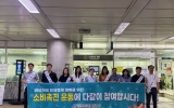 구청 이영욱 기자2025. 06.26[나이스데이] 광주교통공사는 26일 광주시 서구 상무역에서 도시철도 이용객을 대상으로‘소비 촉진 캠페인’을 열고, 위축된 소비 심리 회복과 민생 경제 활성화를 위한 시민 홍보 활동을 펼쳤다고 밝혔다. 이날 캠페인에서는 공사 임직원 20여명이 참여한 가운데 월 1회 이상 주변 전통시장·동네상점 방문, 광주시 공공배달앱 이용, 광주상생카드를 포함한 지역화폐 사용 권장 등 상권 안정과 민생 회복을 위한 다양한 방안을 홍보하며 시민들의 적극적인 참여를 독려했다. 특히 참여자들은 캠페인을 마친 후 본사 구내식당 대신 인근 소상공인 …