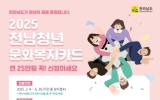 여수 손태성 기자2025. 06.18[나이스데이]담양군은 청년의 문화생활과 자기 계발을 지원하는 ‘전남청년 문화복지카드 지원사업’ 신청이 오는 30일 마감됨에 따라, 관내 거주하는 청년들에게 신청을 당부했다. ‘전남청년 문화복지카드’는 농협카드 누리집(온라인) 또는 주소지 읍·면 행정복지센터를 통해 신청할 수 있으며, 지난해 지원을 받은 청년도 올해 다시 신청해야 지원금을 받을 수 있어 각별한 주의가 필요하다. 지원 대상은 공고일 기준 담양군에 2년 이상 주민등록을 두고 거주 중인 만 19세~28세 청년이며, 1인당 연 25만 원이 지급된다. 단, 공공기관…