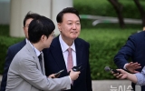 탑뉴스 뉴시스2025. 06.16[나이스데이] 윤석열 전 대통령이 이재명 대통령의 '내란·김건희·채상병' 특별검사 임명 후 처음으로 열린 자신의 내란 혐의 형사재판에 묵묵부답으로 출석했다. 서울중앙지법 형사합의25부(부장판사 지귀연)는 이날 오전 10시15분 서울 서초구 서울법원종합청사 417호 형사대법정에서 내란 우두머리 및 직권남용·권리행사방해 혐의를 받는 윤 전 대통령의 7차 공판을 진행한다. 윤 전 대통령은 이날 오전 10시께 법원에 모습을 드러냈다. 윤 전 대통령은 "조은석 내란 특검 임명 어떻게 보시나" "특검에서 소환 조사 요구하면 응할 것…