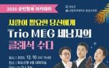 전남 이영욱 기자2025. 11.24[나이스데이]화순군은 '2025 군민행복 아카데미의 마지막 10회차 강연을 오는 12월 10일 오후 3시에 화순군청 4층 대회의실에서 개최한다고 밝혔다. 이번 강연은 클래식 연주단체 Trio MEG를 초청해 ‘사랑이 필요한 당신에게 – Trio MEG 세 남자의 클래식 수다’를 주제로 진행된다. 피아노(김용진)·바이올린(오현)·첼로(윤여훈)의 실내악 연주와 해설을 곁들인 클래식 토크 콘서트 형식으로, 누구나 공감할 수 있는 ‘사랑’을 테마로 재해석한 명곡을 군민들에게 들려줄 예정이다. Trio MEG는 2017년 창단한 클래…