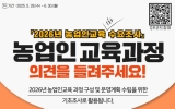 광주 이자형 기자2025. 06.08[나이스데이]광주광역시 농업기술센터는 현장 목소리를 반영한 농업교육 설계를 위해 오는 30일까지 ‘2026년도 농업인 교육과정 온·오프라인 수요조사’를 실시한다. 이번 조사는 농업인의 실제 요구를 반영한 교육과정을 개발하고, 지역 실정에 맞는 체계적 교육체계를 구축하기 위한 기초자료를 확보하기 위해 진행된다. 조사 기간은 5월28일부터 6월30일까지 약 한 달간이다. 광주지역 (예비)농업인과 농업교육에 관심 있는 시민 누구나 참여 가능하다. 참여는 온라인과 오프라인을 병행해 이뤄진다. 온라인은 광주농업기술센터 누리집 알림창·…