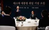 탑뉴스 뉴시스2025. 06.04[나이스데이] 이재명 대통령이 취임 첫날인 4일 국회를 찾아 우원식 국회의장, 여야 대표들과 통합을 상징하는 비빔밥 메뉴로 오찬을 가졌다. 이 자리에서 이 대통령은 정치권과 소통을 강화하고 화합의 정치를 펼치겠다고 약속했다. 이 대통령은 이날 서울 여의도 국회 사랑재에서 열린 '제21대 대통령 취임 기념 오찬'에 참석했다. 이 자리에는 우 의장과 박찬대 더불어민주당 대표 권한대행겸 원내대표, 김용태 국민의힘 비상대책위원장, 김선민 조국혁신당 대표 권한대행, 김재연 진보당 상임대표, 천하람 개혁신당 대표 권한대행 겸 원내…