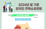 여수 손태성 기자2025. 05.30[나이스데이] 지난해 외국인이 소유한 주택이 처음으로 10만가구를 넘겼다. 외국인 소유 주택의 절반 이상은 중국 국적자가 소유한 것으로 조사됐다. 30일 국토교통부가 발표한 '외국인 토지·주택 보유통계'에 따르면, 2024년 말 기준 외국인이 소유한 주택은 10만216가구, 주택 소유 외국인은 9만8581명으로 집계됐다. 이는 전체 주택(1931만가구, 2024년 가격공시 기준)의 0.52% 수준이다. 가구 수는 지난해 상반기(9만5058가구) 대비 5.4%(5158가구), 소유자 수는 같은 기간(9만3414명) 대비 5…