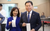 보성 정승희 기자2025. 05.29[나이스데이]김한종 장성군수 내외가 제21대 대통령선거 사전투표 첫날인 29일 오전 장성읍 사전투표소가 마련된 장성군민회관에서 투표하고 있다. 제21대 대통령선거 사전투표는 29~30일 장성지역 12개 투표소에서 진행된다. 본투표는 6월 3일 오전 6시부터 오후 8시까지 지역 내 15개 투표소에서 실시된다. 장성군 선거권자는 약 3만 8300여 명이다.