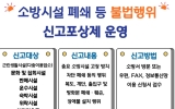 전남 이영욱 기자2025. 09.23[나이스데이]장흥소방서는 2025년 연중 운영되는 소방시설 불법행위 신고포상제를 통해 군민과 함께 안전한 지역사회 만들기에 나선다고 밝혔다. 이 제도는 다중이용시설과 공동주택 등에서 발생하는 비상구 폐쇄, 소방시설 차단 등 불법행위를 주민이 발견해 알릴 수 있도록 한 제도로, 불법행위가 확인되면 소정의 포상금이 지급될 수 있다. 군민이 불법행위를 발견하면 국민신문고(PC·모바일), 장흥소방서 누리집(홈페이지), 또는 휴대폰으로 촬영한 사진 제출을 통해 손쉽게 신고할 수 있다. 신고는 간단히 접수 가능하며, 관할 소방서에서 확인…
