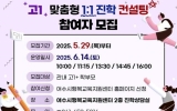여수 손태성 기자2025. 05.28[나이스데이]여수시가 오는 6월 14일 행복교육지원센터에서 열리는 ‘고1 맞춤형 1:1 진학 컨설팅’에 참여할 학생과 학부모를 모집한다. 해당 프로그램은 바뀐 교육 과정에서 더욱 비중이 높아진 학교생활기록부 작성과 내신 관리 정보를 제공하고 현실적인 진로·진학 방향을 제시해 개인별 대입 준비 역량을 높이기 위해 마련됐다. 상담은 ▲오전 10시 ▲오전 11시 15분 ▲오후 1시 30분 ▲오후 2시 45분 ▲오후 4시 등 5차시로 마련됐으며, 차시별로 1시간씩 진행된다. 모집 인원은 차시별 10명이며, 학부모 동반 참여가 가능하다…