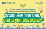 교육 이자형 기자2025. 05.26[나이스데이]광주동·서부교육지원청이 ‘특수교육대상자 무상·의무교육 자료’를 제작, 배포한다. 이번 자료는 취학 전 영아와 3~5세 특수교육대상 유아 및 초·중·고등학교 특수교육대상학생, 학부모가 생애주기별로 적절한 특수교육 및 특수교육 관련 서비스를 받을 수 있도록 지원하기 위해 제작됐다. 자료는 영아부터 고등학생까지 특수교육대상자 선정 및 배치와 무상·의무교육 지원 등에 대한 안내를 담은 리플릿 1종과 포스터 1종 등 총 2종이다. 특히 '발달이 느린 우리 아이, 어떤 교육이 필요할까요?'를 주제로 ▲특수교육대상자…