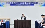 여수 손태성 기자2025. 05.21[나이스데이]정기명 여수시장이 지난 20일 2026여수세계섬박람회 조직위원회를 방문해 현안 대책 회의를 가졌다. 이번 회의는 정기명 시장을 비롯해 최정기 부시장, 김종기 조직위 사무총장, 간부 공무원 등 30여 명이 참석한 가운데 섬박람회 준비 상황과 추진계획에 대한 보고, 토론 순으로 진행됐다. 정 시장은 “최근 세계지방정부협의회(ICLEI)의 협력 기관으로 지정되면서 공식 로고 사용을 승인받고, 서울시에 이어 부산시와 섬박람회 성공 개최를 위한 협약을 체결해 국내외 네트워크를 탄탄히 구축하고 있다”며 “박람회까지 남은 1년여…