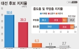 탑뉴스 뉴시스2025. 05.20[나이스데이] 21대 대통령 선거 후보 지지도 조사에서 이재명 더불어민주당 후보가 50.6%, 김문수 국민의힘 후보가 39.3%라는 여론조사 결과가 20일 나왔다. 뉴시스가 여론조사 전문회사 에이스리서치에 의뢰해 지난 18~19일 전국 만 18세 이상 남녀 1004명을 대상으로 여론조사를 실시한 결과 대선 후보 지지도는 이 후보가 50.6%, 김 후보가 39.3%로 나타났다. 이준석 개혁신당 후보는 6.3%로 뒤를 이었다. 기타 후보는 1.1%였고, '없음'과 '잘 모르겠다'는 각각 1.8%, 0.9%로 집계됐다. …