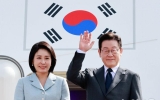 정치 뉴시스2025. 09.22[나이스데이] 이재명 대통령이 22일 제80차 유엔총회 참석을 위해 3박5일 간의 방미길에 올랐다. 이 대통령은 이날 오전 김혜경 여사와 함께 성남 서울공항을 통해 미국 뉴욕으로 출국했다. 이날 공항 환송에는 김민재 행정안전부 차관, 박윤주 외교부 1차관, 제임스 헬러 주한미국대사관 차석을 비롯해 여당에서 정청래 당대표, 김병기 원내대표, 조승래 사무총장 등이 나섰다. 이 대통령과 김 여사는 환송 인사들과 함께 걸어나와 '1호기'로 향했다. 이 대통령은 진회색 정장에 검은색 넥타이를 착용했고, 김 여사는 하늘색 투…