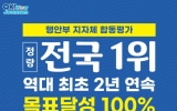 고흥 주용규 기자2025. 05.08[나이스데이]전라남도는 행정안전부의 2025년(2024년 실적) 지자체 합동평가 결과 정량지표에서 2년 연속 100%로 1위를 달성했다고 밝혔다. 이는 지난해에 이어 전국 17개 시·도 가운데 유일하게 정량지표 100% 달성한 것이다. 2년 연속 100%는 앞으로도 깨지기 어려울 것이라는 분석이다. 자자체 합동평가는 행정안전부를 비롯한 중앙행정기관이 공동으로 전국 17개 시·도에 대해 국가위임사무와 국고보조사업, 국가 주요 시책 추진성과 등을 대상으로 이뤄지는 지방자치단체 종합평가다. 올해는 정량지표(목표달성도 평가) 97…