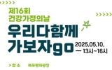 목포 박정래 기자2025. 04.30[나이스데이]목포시는 제16회 건강가정의 날을 기념해 오는 5월 10일 오후, 평화광장 주무대(바다분수 앞)에서 ‘우리 다함께 가보자 Go!’라는 주제로 가족축제를 개최한다. 이번 행사는 5월 가정의 달을 맞아 목포시가 주최하고, 목포시가족센터가 주관하며, 지역 유관기관과의 협업을 통해 온 가족이 함께 즐길 수 있는 체험부스와 문화공연이 다채롭게 마련된다. 공연 프로그램으로는 ▲이랜드노인복지관 어르신 라인댄스, ▲예향퓨전 아랑고고 장구공연, ▲청소년 라틴댄스, ▲해군 제3함대 군악대 연주, ▲솔로몬지역아동센터 아동 치어리딩 공연…