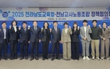 장흥 김창민 기자2025. 04.29[나이스데이]전라남도교육청과 전남교사노동조합은 29일 청사 중회의실에서 노사 양측 관계자들이 참석한 가운데 ‘2025년 정책협의회 개회식’을 갖고 오는 5월 9일까지 협의회를 진행한다. 이번 정책협의회에서 다룰 주요 내용은 ▲ 학교업무경감 ▲ 현장체험학습운영 ▲ 교육활동 보호 ▲ 교사 처우개선 및 본질업무 회복 등 현장의 요구를 반영한 50개 항목이다. 전남교육청과 전남교사노조는 이번 정책협의가 원만히 이뤄지면 소통과 협력, 상생의 동반자 관계로 한 단계 더 발전하게 될 것으로 기대한다. 노·사 양측은 이날 개회식에서 교육 …