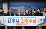 광양 손태성 기자2025. 12.17[나이스데이]전라남도 나주시가 영산강 유역 주민을 대상으로 한 장내기생충 예방관리 사업에서 체계적인 조사와 사후관리 성과를 인정받아 질병관리청장 표창을 수상하며 지역 감염병 대응 역량을 대외적으로 입증했다. 나주시보건소 질병관리과는 지난 11일 질병관리청이 주최한 ‘2025년 장내기생충 조사사업 평가대회’에서 우수 기관으로 선정돼 질병관리청장 표창을 받았다고 17일 밝혔다. 이번 평가는 전국 지방자치단체의 한 해 조사성과를 공유하고 우수 사례를 확산하기 위해 마련됐으며 나주시는 영산강 유역 장내기생충 감염 고위험 지역 주민을 대…
